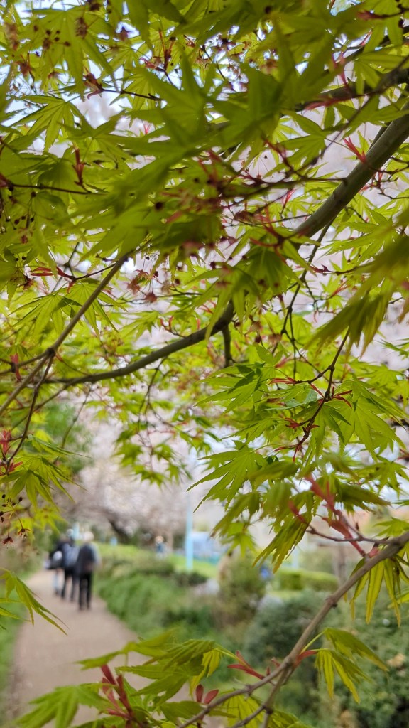 Here you’ll run into sweet local families, mischievous school kids, international students, and workers living in the area. There’s plenty of park benches along the path where you can take a break and enjoy the blossoms, or step into one of the little parks, like Takenoko Park, connected to Green Road and enjoy a picnic or admire other florals in the area.