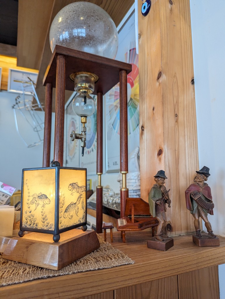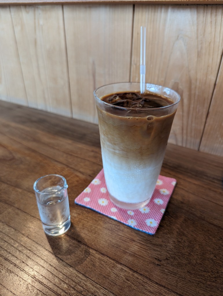 I loved everything about this humble little coffee shop in town. The owner was friendly and could speak some English and we had a nice chat while I sat at the counter watching him artfully make a pour over coffee. There are different roasts to choose from with English written under the Japanese and you can purchase coffee beans that Iwamoto-san roasts in store. I ordered and iced coffee since it was a steamy summer day which comes with a mini jug of sugar syrup on the side, a very common offering at Japanese coffee shops.